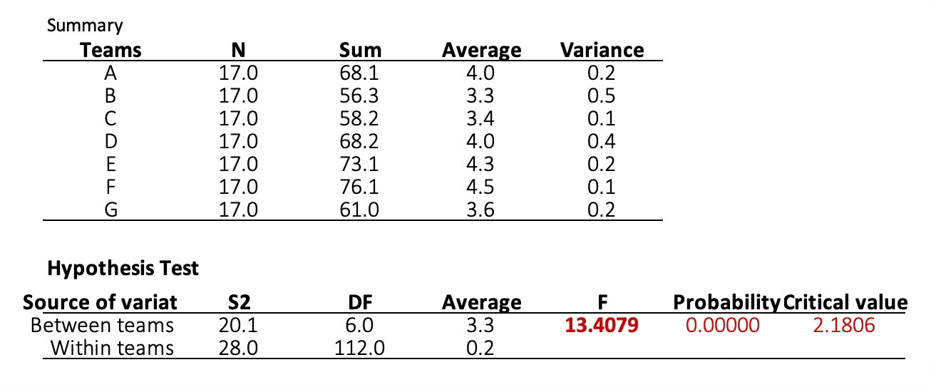After collecting the data in one of the departments I work with, and performing our analysis, we found significant differences between the teams, which we illustrated in a simple graphic. Notably, we discovered one team that is underperforming.